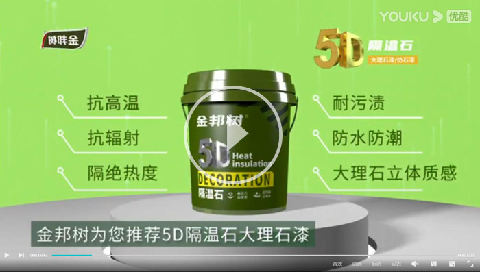 真石漆/岩片漆/质感漆 金邦树真石漆/岩片漆/质感漆采用航天飞船技术(HRSI)隔热技术原理,具有超强隔热效果,给家居环境带来了冬暖夏凉的非凡体验,表面温差相隔10-15℃,节能排减,抗紫外线,防风化,有效减少用电量,并配合进口聚合物丙烯乳液基料、天然大理石骨料、岩片、助剂等材料制成仿大理石纹路喝色彩。 Really stone paint 金邦树真石漆/岩片漆/质感漆宣传视频 真石漆/岩片漆/质感漆施工工艺
